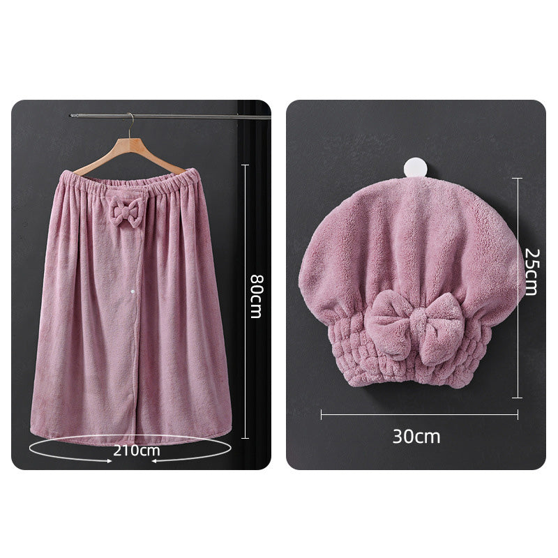 SLIP-RESISTANT SAFETY DESIGN – The bathrobe features secure hook-and-loop closures and buttons to prevent slipping and accidental exposure during movement. The wide elastic band on the hood fits snugly without causing pressure on the head. Additionally, the bowknot decoration on both the hair cap and the front of the bathrobe adds a cute touch to your at-home look.
