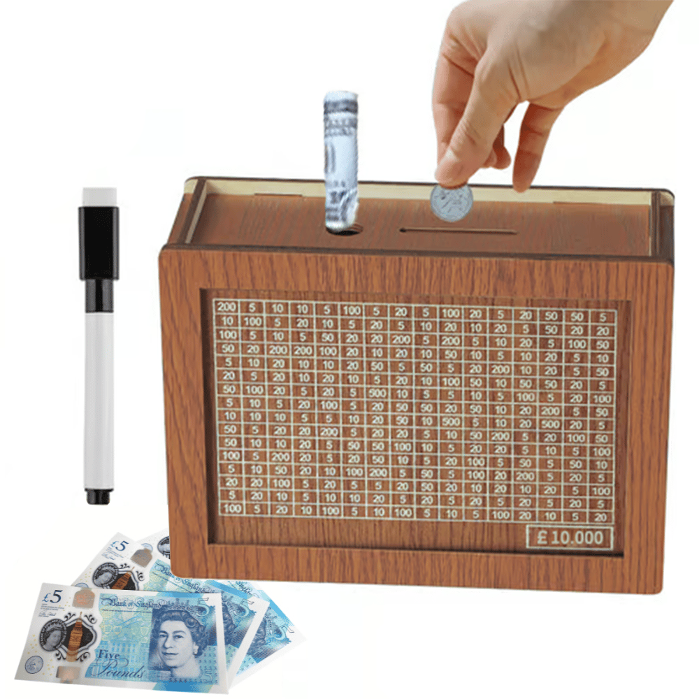 💸Superior Craftsmanship: Crafted from premium wood, our Wooden Money Box combines durability with elegant design. Its lightweight and portable structure make it easy to place anywhere in your home. Each money jar includes a marker pen for conveniently checking off saved amounts, simplifying your savings journey.