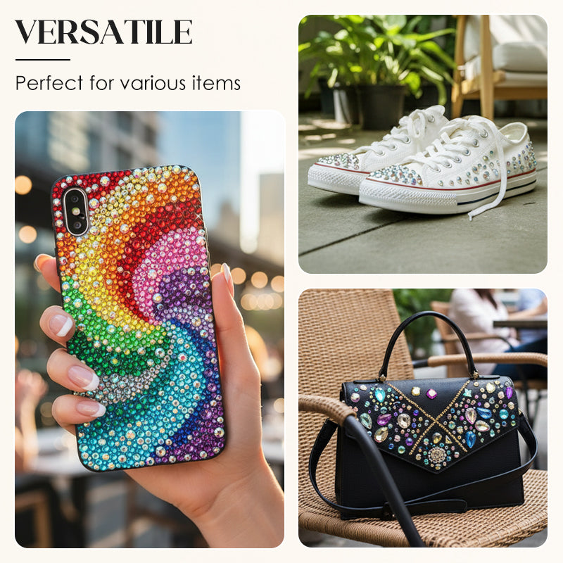WIDE APPLICATION - Ideal for decorating a variety of items such as phone cases, shoes, bags, and nail art. Add a unique, glittering touch to all your belongings.